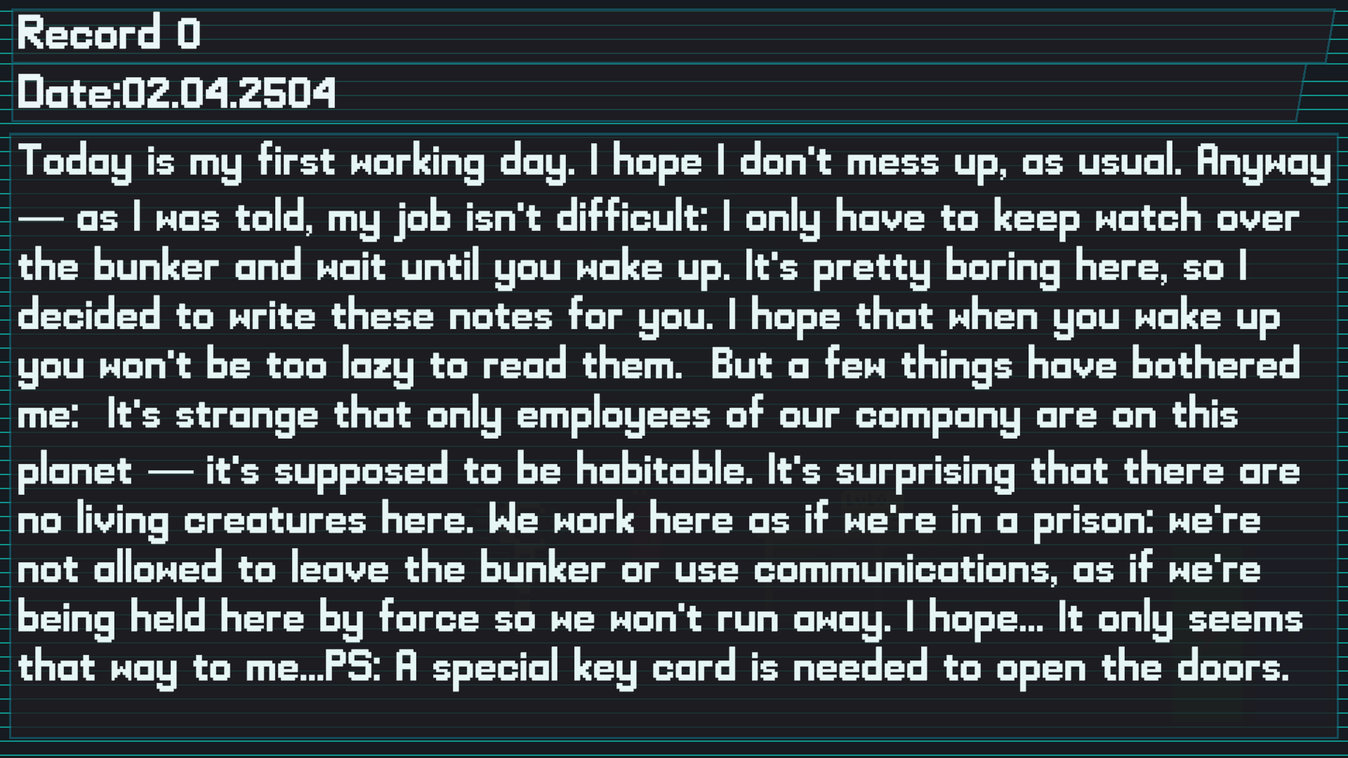 In it, you are a character who woke up in the year 3004 in an almost extinct universe.